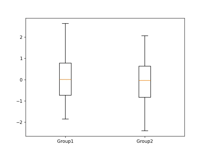 plt.boxplot([data1, data2], labels=['Group1', 'Group2'])