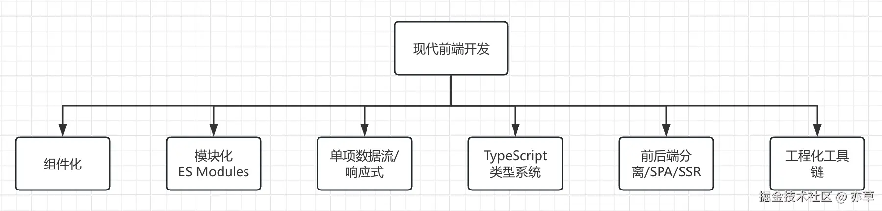| 更适合现代工程体系 | 可使用构建工具、组件化、模块化、TypeScript 等先进技术 |