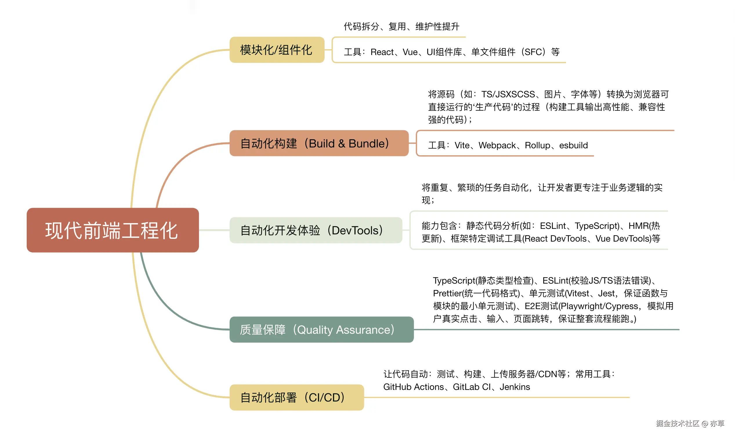 | 前端工程化要求更高 | 构建工具(Webpack/Vite)、Lint、TypeScript、CI/CD 更复杂 |