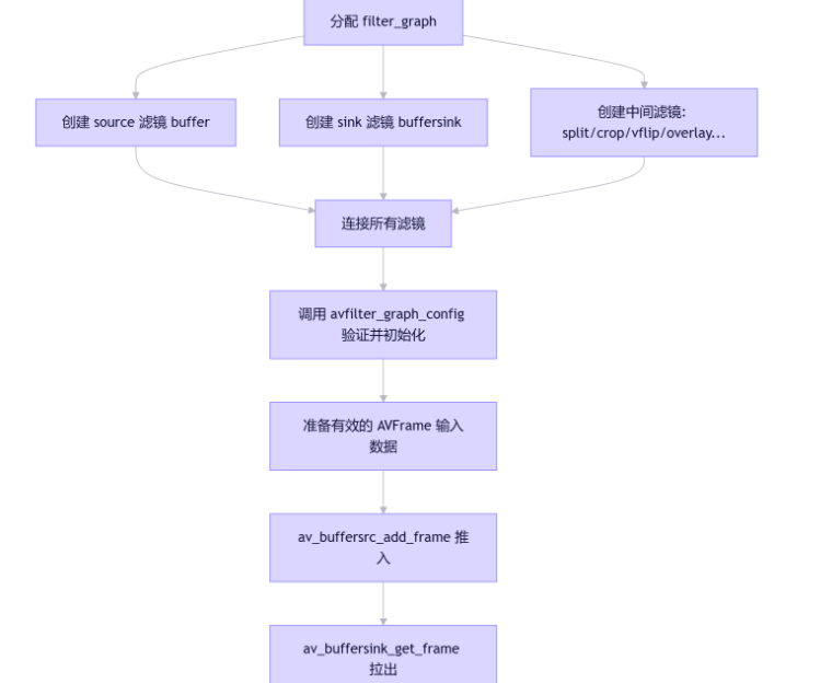 avfilter_graph_config(filter_graph, NULL); // 验证图结构