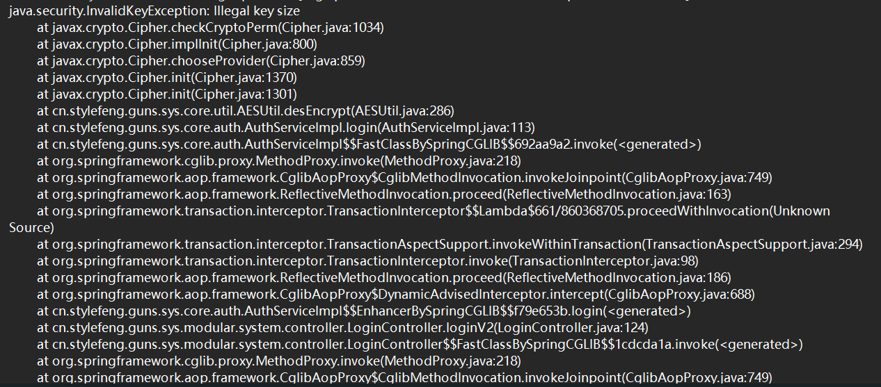 at cn.stylefeng.guns.sys.core.util.AESUtil.desEncrypt(AESUtil.java:286)