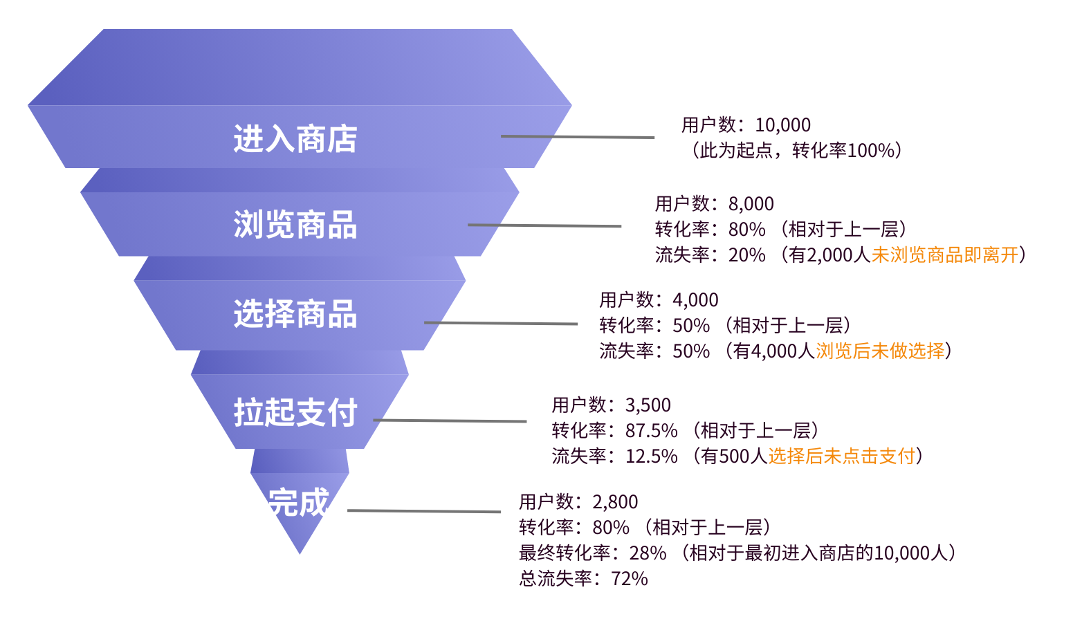 - 转化分析: 无论游戏设计有多精妙,最终的目标仍是促使玩家付费。因此,转化分析显得尤为重要。就像观察漏斗一样,通过玩家行为数据,我们可以清晰地看到,玩家在完成某个核心目标时,在哪一环节流失最多。例如,从"进入商店"到"浏览商品"再到"成功支付"的过程,如果大多数玩家在"选择商品"后就离开,说明商品的吸引力、定价或展示方式可能出了问题。