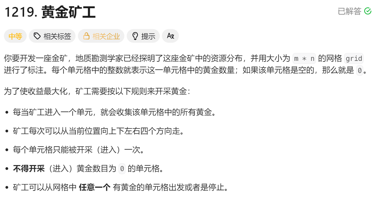 题目链接:https://leetcode.cn/problems/path-with-maximum-gold/