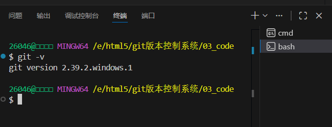 在电脑安装Git后,打开bash终端,输入git -v查看版本号
