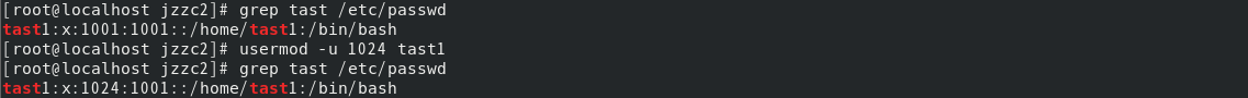 usermod -u 1024 tast1 # 将tast用户的UID更改为1024