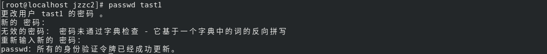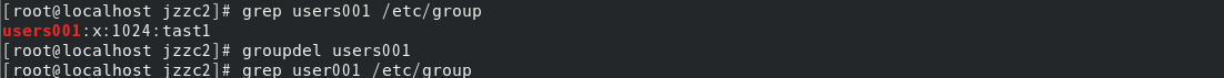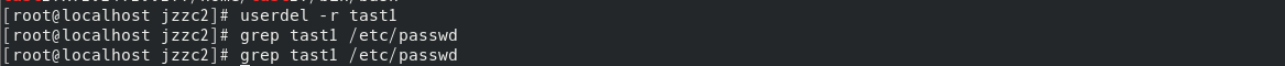 userdel -r tast1 # 删除用户tast,-r选项用于在删除用户同时删除其下的目录及文件