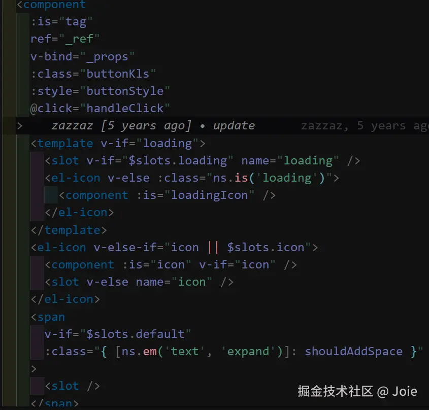 这说明 Button 组件有一个 tag 的 prop(定义在 button.ts 里),常见用法:
