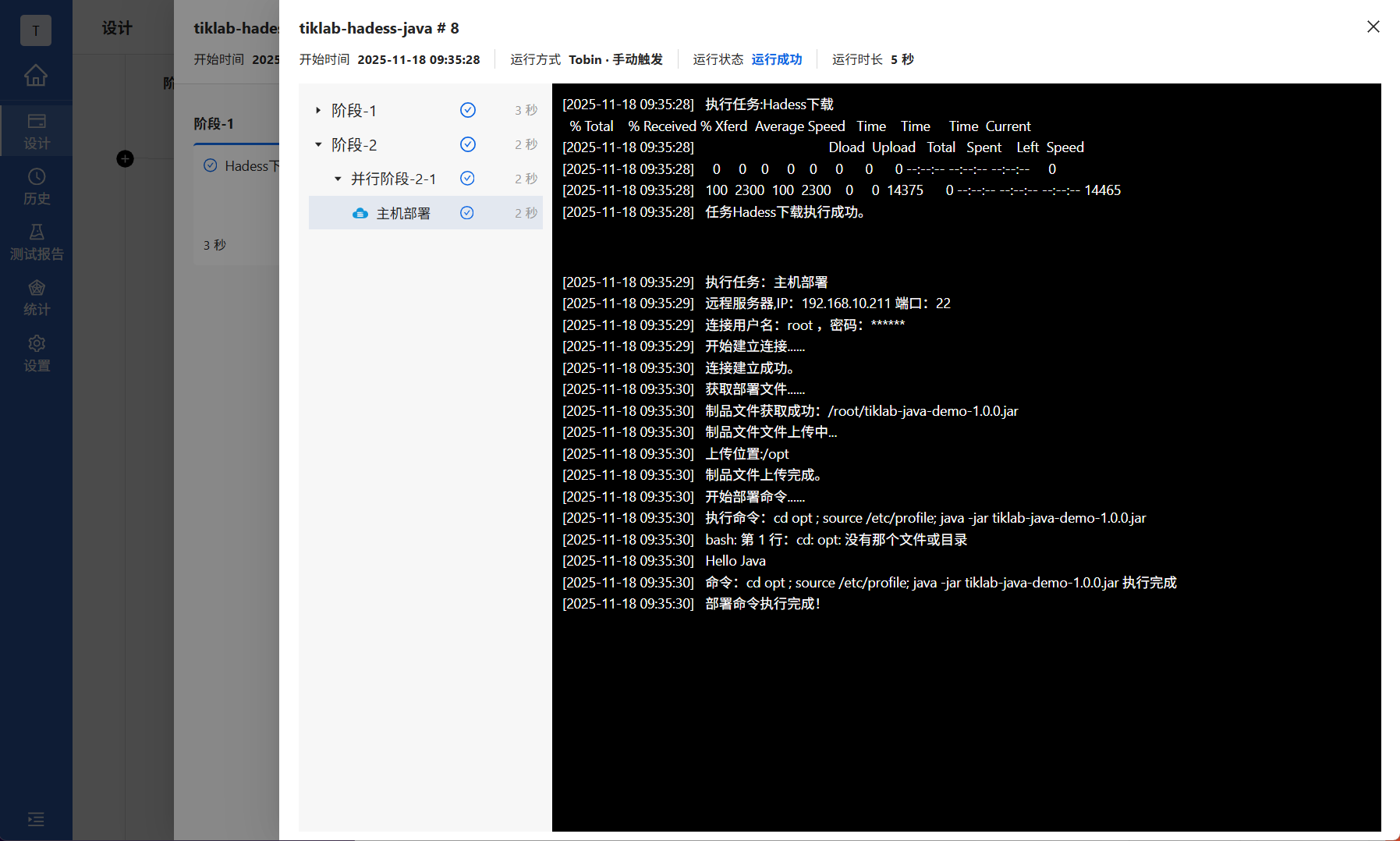 至此,使用Arbess成功搭建流水线,用来下载Hadess制品进行主机部署。