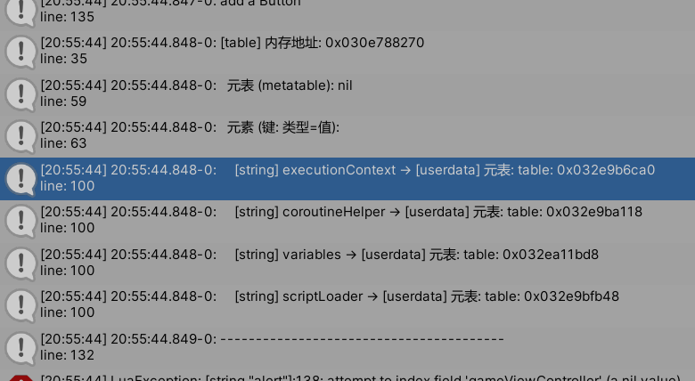 -- 打印 table 元素(非普通遍历:标注元素类型+编译级信息)
