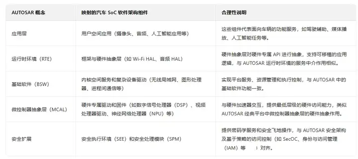 表1、推导的SoC架构与AUTOSAR概念的功能对齐