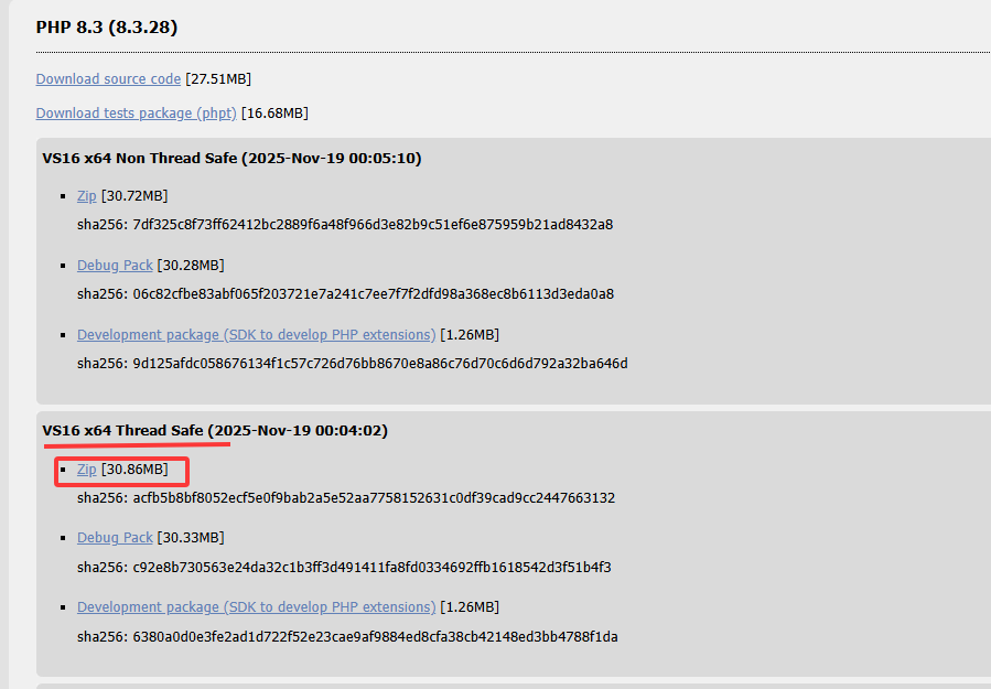 👉 必须选择 Non-Thread Safe (NTS) 版本 (因为不是用 Apache mod_php)