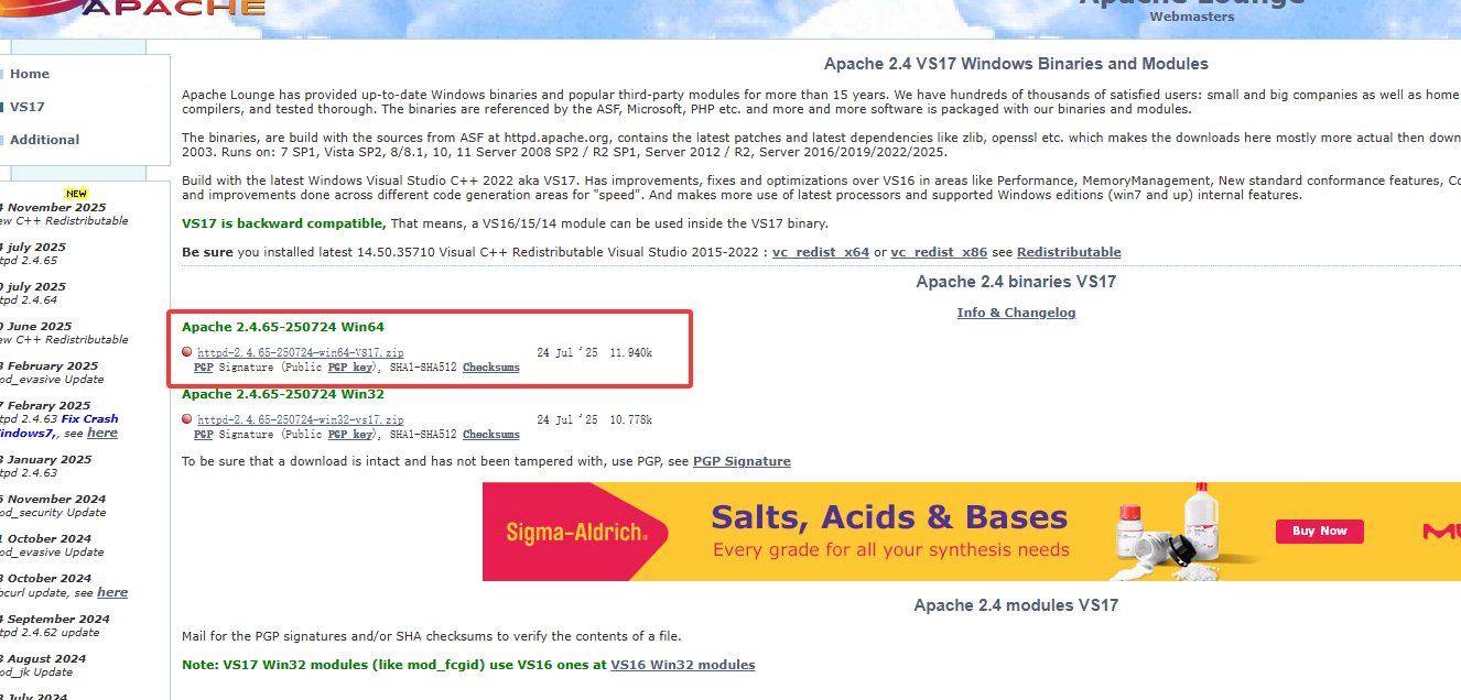 - Apache for Window 访问 https://www.apachelounge.com/download/