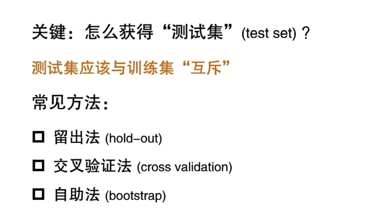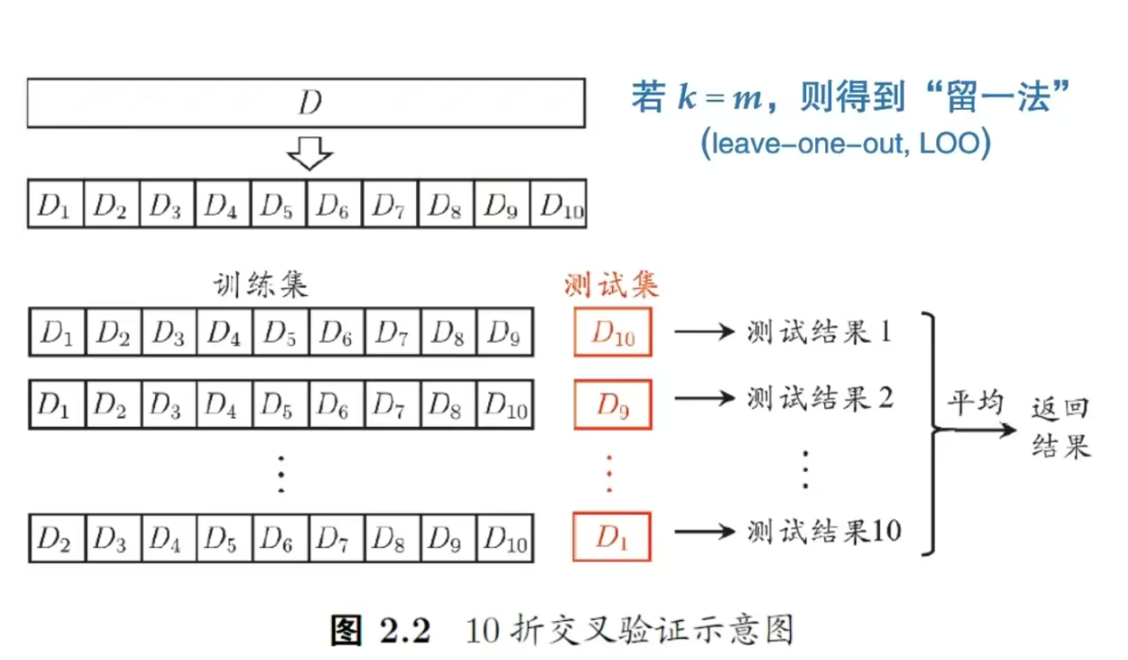 - 多次重复划分(例如:100次随机划分) 目的:减少划分数据带来的误差