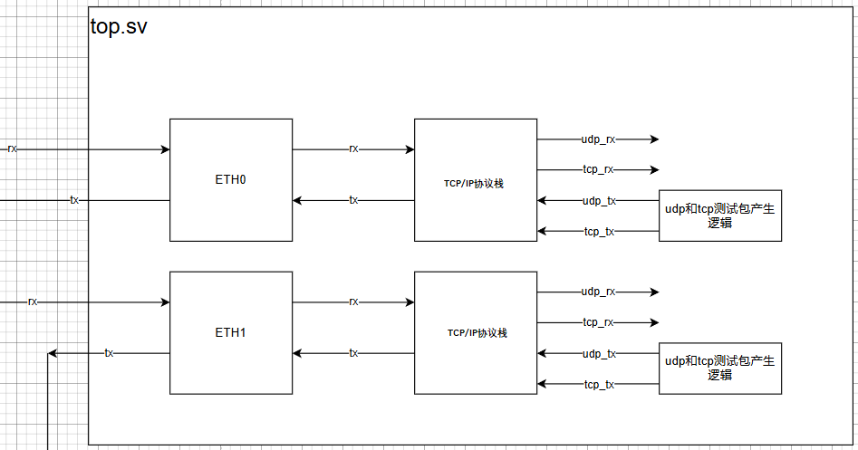 当前项目主要利用10G万兆以太网与上位机进行数据传输。TCP传输逻辑是当FPGA与TCP建立连接之后,FPGA板卡将数据发送到上位机上,当前阶段为了测试方便,FPGA内部发送有规则的累加数据到上位机。其简要结构如图所示,例化了2个TCP/IP模块,实现TCP/UDP协议栈,每个TCP/IP协议栈最多支持256个TCP连接,当前实际支持的个数为<4个。根据需求可配置。