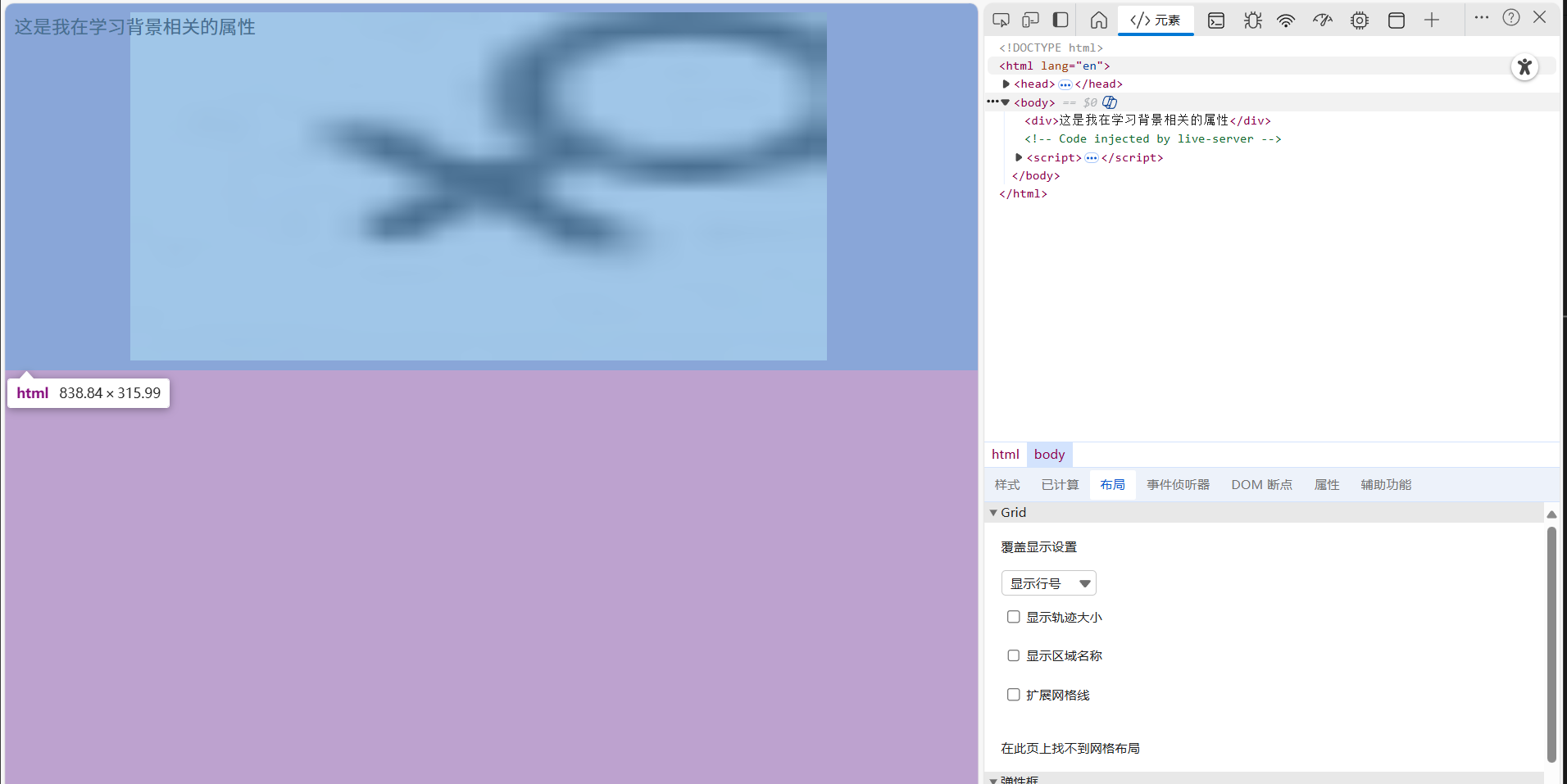 - 背景颜色和背景图片可以同时存在,背景图片在背景颜色的上方