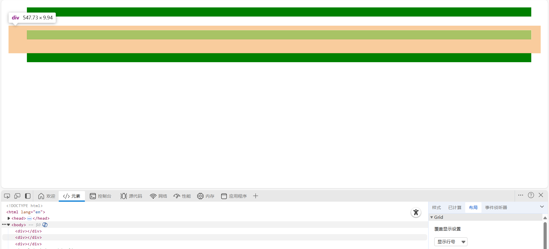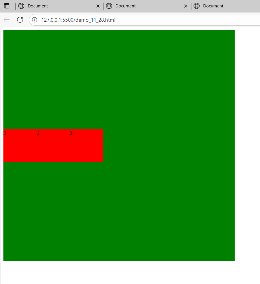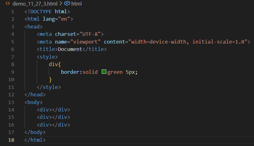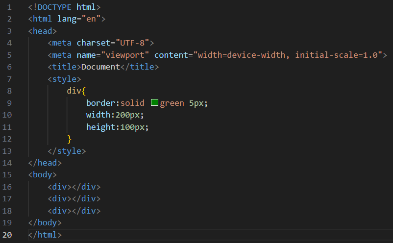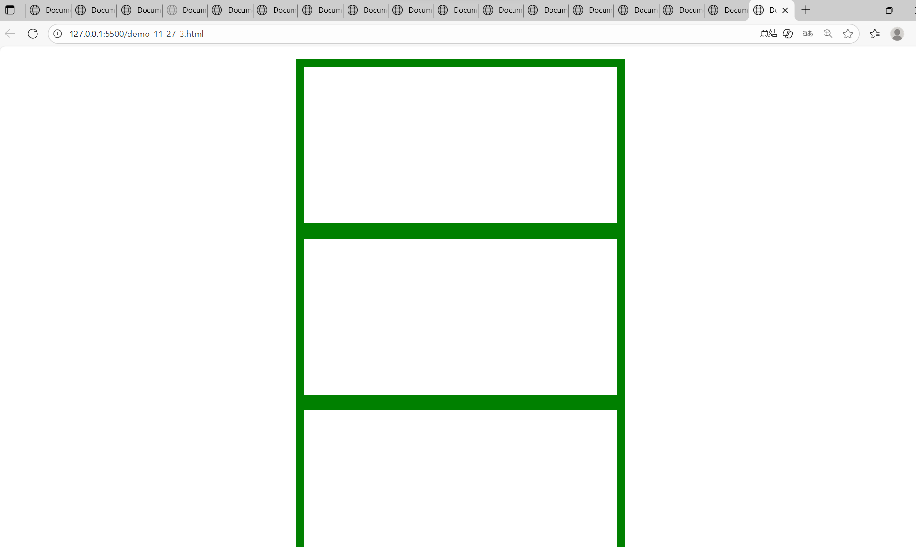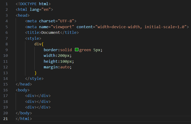 根据上图浏览器中显示的结果可知,写的3个div全都挤在一起了,相当于是外边距为0,因为浏览器里面是默认外边距为0,那么我们可以自己来设置外边距