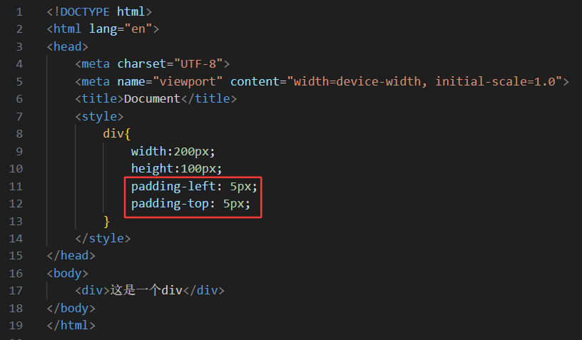 继续回到图6和图7,如果我现在,想要让这行文字左边距离边框是留白,上面距离边框是留白,如下图8所示,红框区域内是留白,只在梅粉色区域内显示文字,该如何?可通过padding