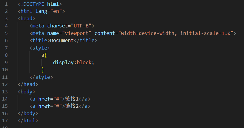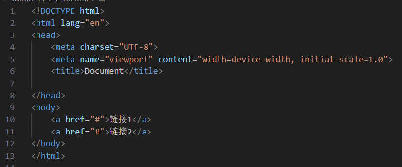 注意:第10行第11行:如果双引号里什么都不写或者只写一个#号,那就代表的是什么都不让它跳转,只是在这里举例子,所以先不写链接!