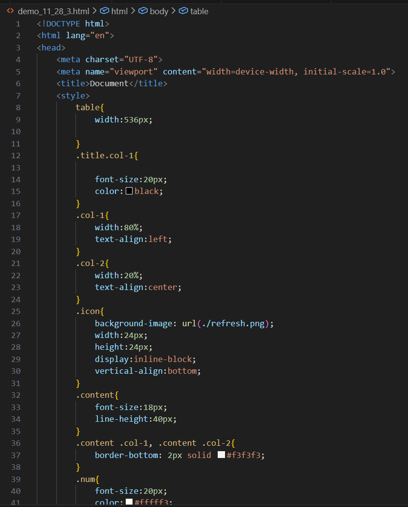 图11当中第2点,加粗,其实不用,因为在代码中是将它这一行设置成表头,而表头是自动加粗的,如果你想加粗也可以写font-weight:bolder