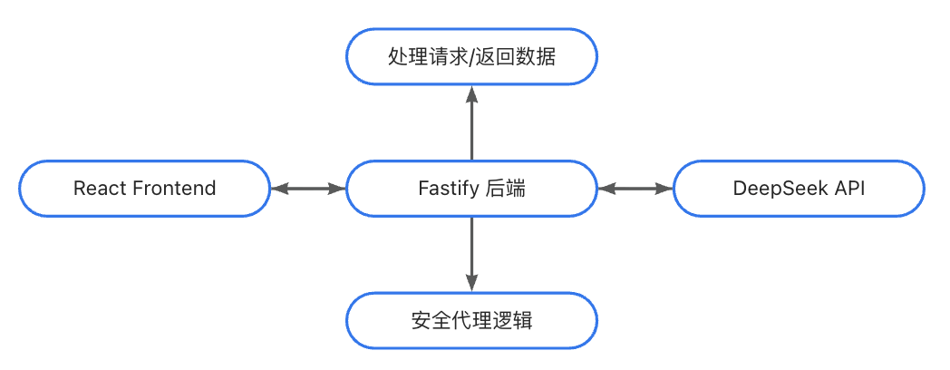 后端(Fastify):代理 DeepSeek API 请求,隐藏 API Key,处理逻辑(LLM / Vision / Embedding)。
