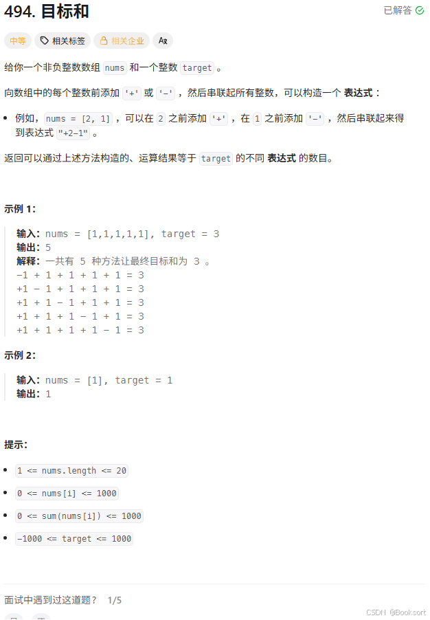 设数组中所有合法方案的正数和为p,则负数和为sum-p,有 t a r g e t = p − s u m + p − > p = t a r g e t + s u m 2 target=p-sum+p->p=\frac{target+sum}{2} target=p−sum+p−>p=2target+sum。