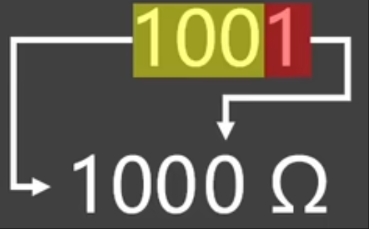 依据上面的说法,如果给的数值为:1001,表示:1000Ω
