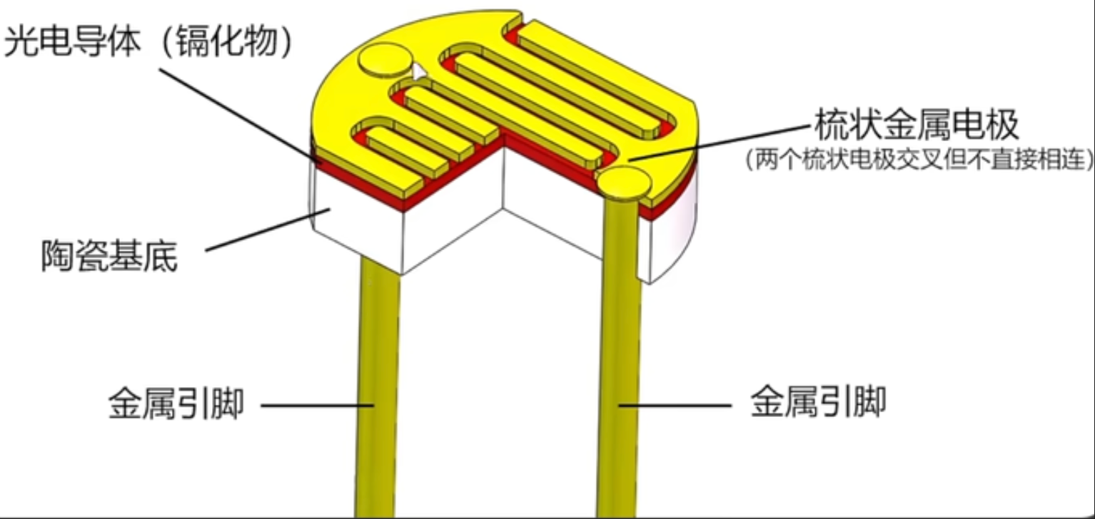 概述:对光敏感的电阻,其阻值会随光照强度而改变,通常规律:黑暗中阻值高,光照