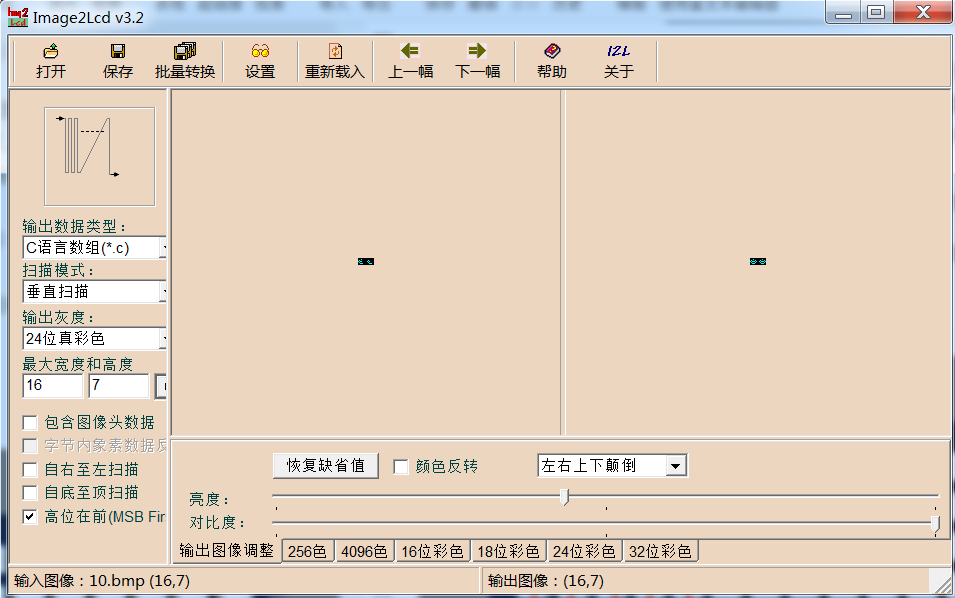 这里用到的一种方便的取色值数据的方法,就是使用我们经常用来取RGB数据显示到TFTLCD显示屏的一个工具:image2LCD