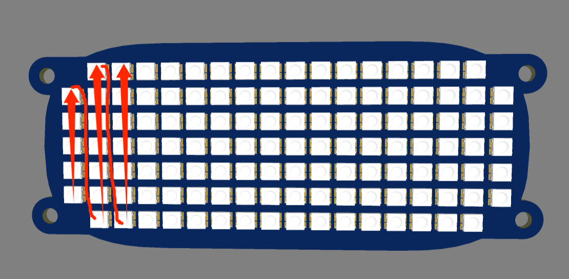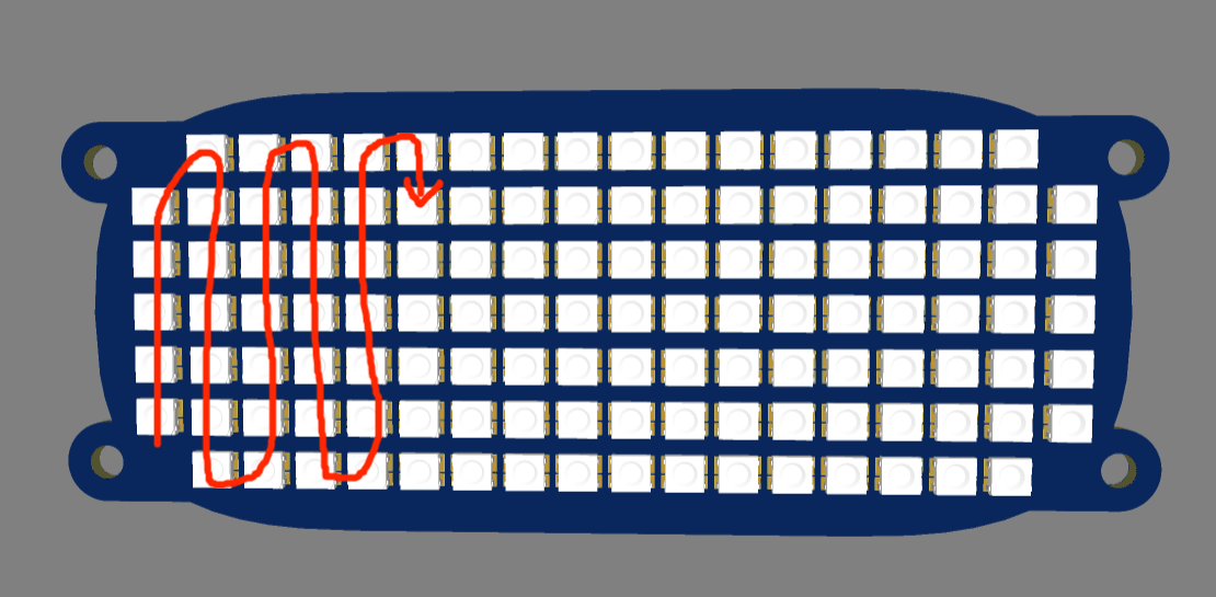可以看出每走完一行或者一列,都要直接跳转到另一行或另一列的最远一个灯进行级联,所以对走线来说就比较麻烦。