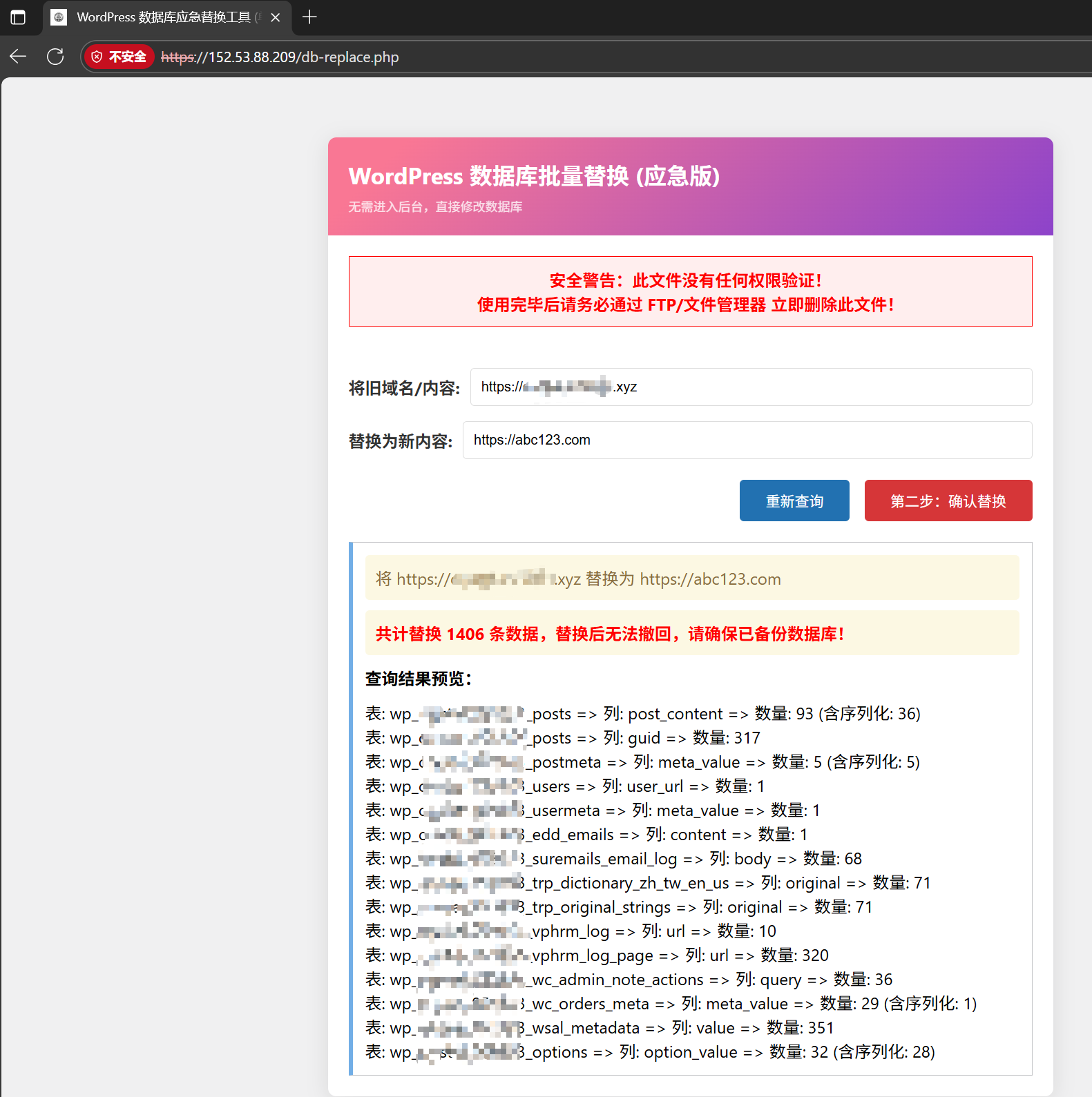 * WordPress 数据库批量替换工具 (独立单文件版)