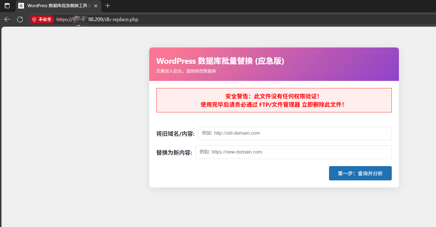 5、使用http://公网ip:端口号/db-replace.php访问该php文件,如果没有打开强制跳转到https的开关的话,就不用加https