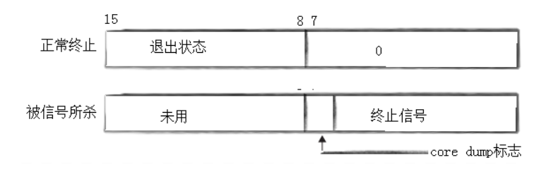status这个退出信息,需要考虑三个因素:(1)退出是否正常;(2)不正常退出,原因是合适;(3)正常退出,结果是否正常。status是int变量,有32个bit位置,只需要关注低16位即可。