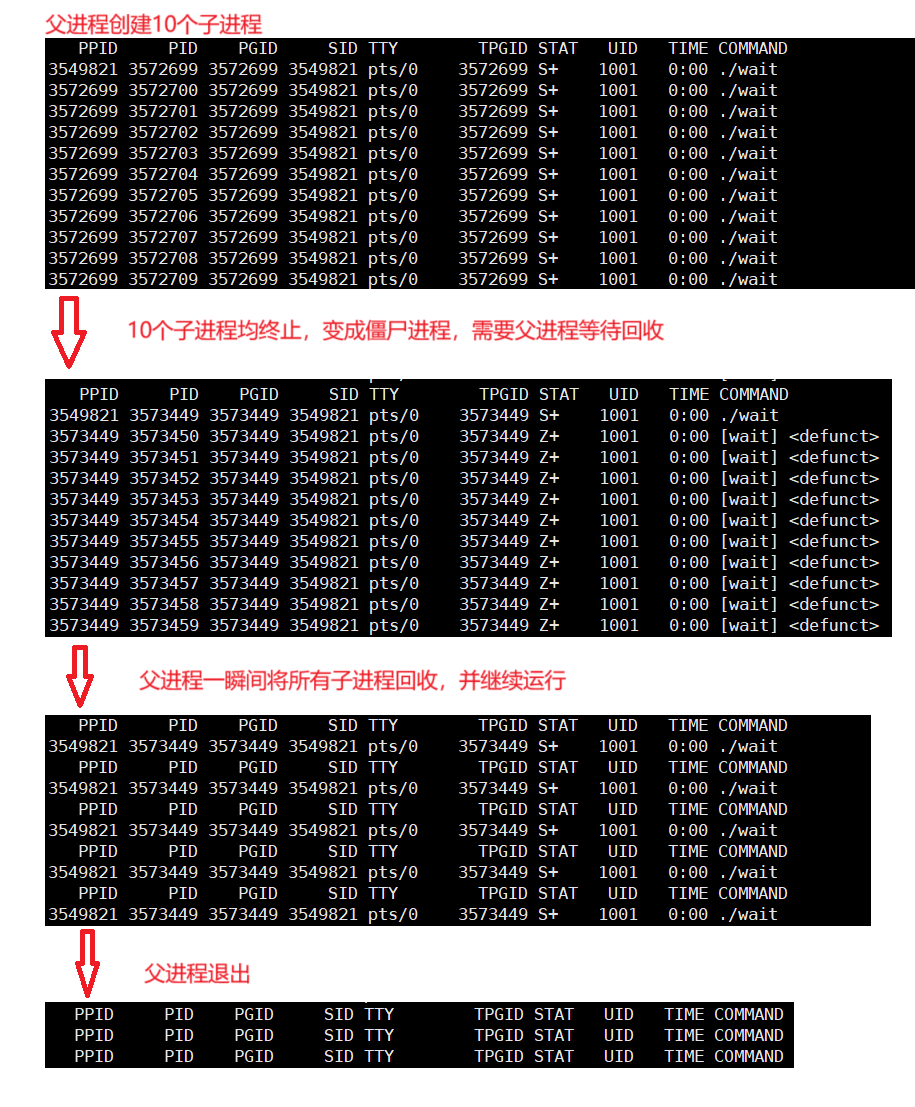 父进程通过调用wait()或者waitpid()进行僵尸进程的回收问题!