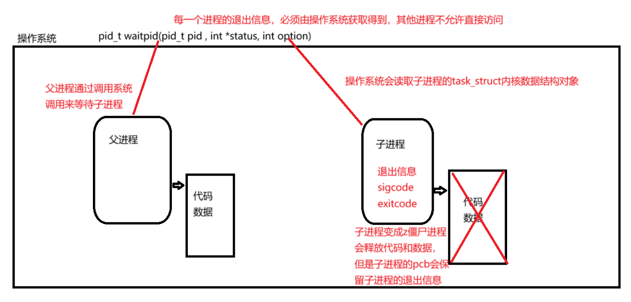 所以,父进程可以通过进程等待的方式回收子进程的资源,从而获取子进程的退出信息。