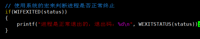 printf("进程是正常退出的,退出码:%d\n", WEXITSTATUS(status));