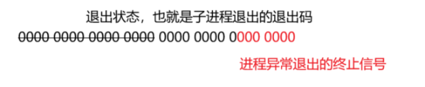 - 前8到15个bit位是描述进程正常退出的退出状态,也就是子进程退出时exit的退出信息。(上面我们的exit退出码是1,将1放在第8个比特上,也就是256)