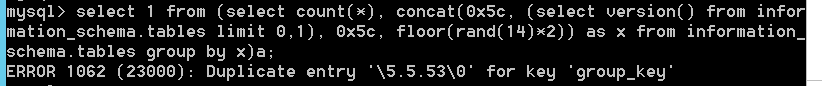 注意:使用 group by 重复键冲突的方法进行注入时,注入的 sql 语句中不能有group_concat函数,否则不会报错