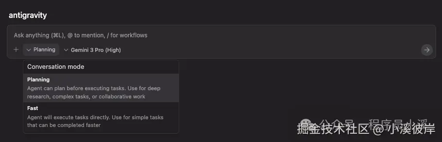Antigravity目前支持 Planning 和 Fast 2种对话模式