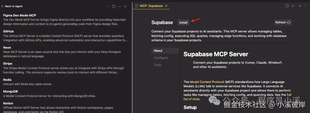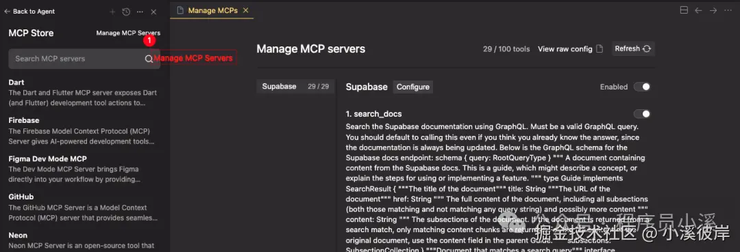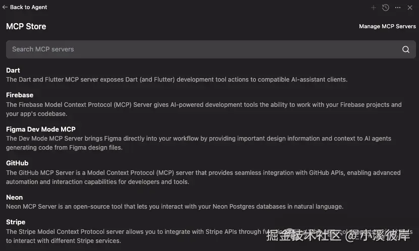 点击【Manage MCP Servers】可以对已安装的MCP进行统一管理