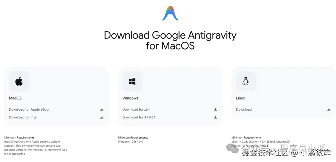 根据安装限制提示,选择自己系统对应的版本下载安装包,安装成功后打开Antigravity界面如下: