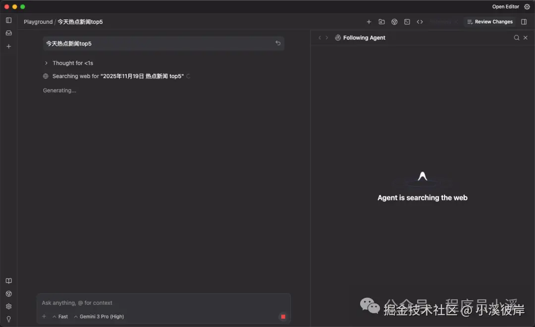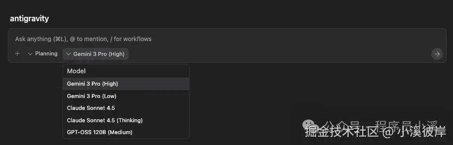 2025年11月19日随着Google发布Gemini 3 Pro模型一并上线了Antigravity Agent IDE,在Antigravity中已默认支持使用 Gemini 3 Pro相关模型,对AI编辑器感兴趣的小伙伴可以看往期内容: