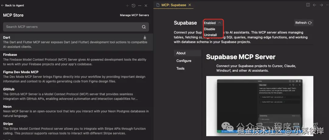 安装完成后,可以在MCP详情 禁用 和 卸载 MCP