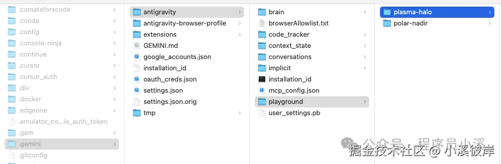 临时工作区存放在 ~/.gemini/antigravity/playground 目录下