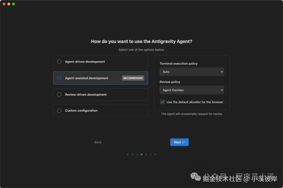 点击【Next】继续,这一步为配置Antigravity Agent使用方式