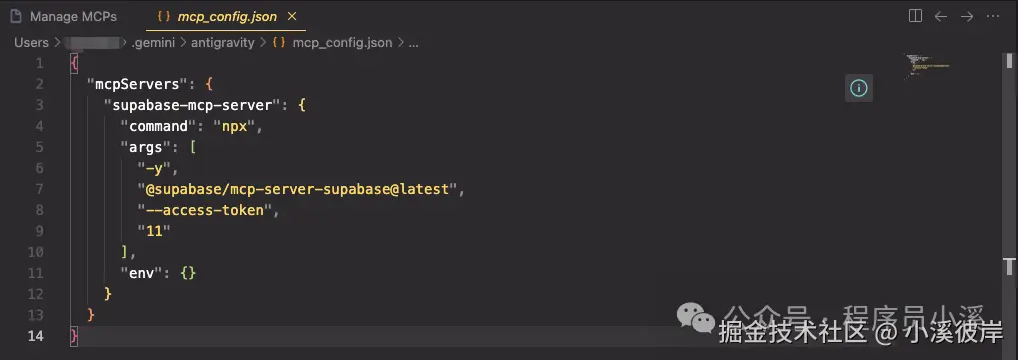 配置文件路径为: ~/.gemini/antigravity/mcp_config.json