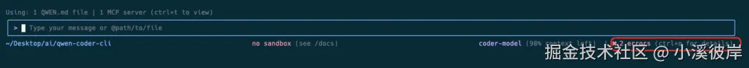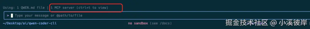 Qwen Code CLI新增了MCP服务快捷键快速查看功能,配置完MCP服务后,可以看到聊天框上方多了一个提示