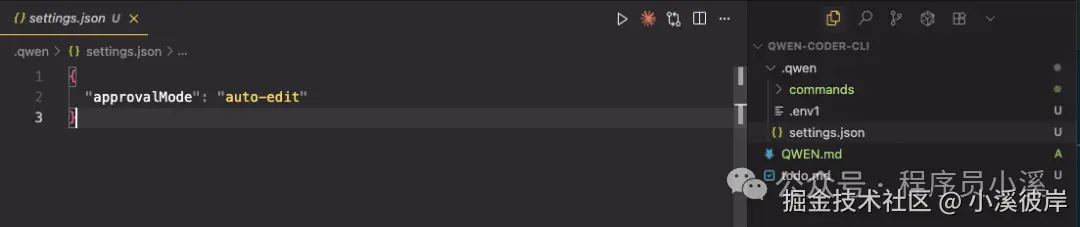 Qwen Code CLI延续了Gemini CLI的配置文件系统,提供了 .qwen/settings.json、.env、QWEN.md 等配置文件,整体上和Gemini CLI的配置文件没有太大差异。