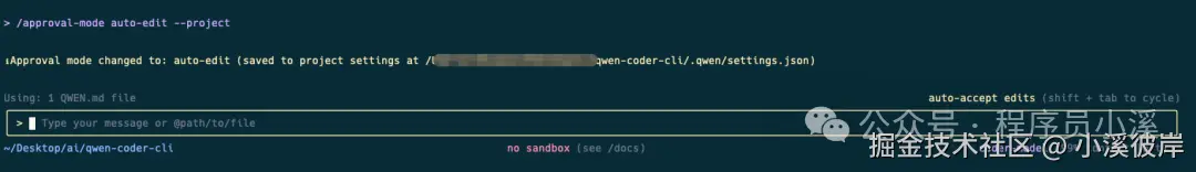 当我们切换到【plan mode】模式发起一个任务时,Qwen Code CLI会对任务进行分析和规划,但是并不会执行计划,而是会提示我们切换到【auto-accept】模式