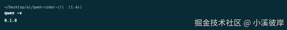 安装完成后,输入 qwen -v 查看Qwen Code CLI版本,看到以下信息表示Qwen Code CLI安装成功。